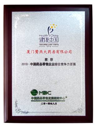 由中國(guó)藥品零售發(fā)展研究中心(MDC)、中國(guó)醫(yī)藥企業(yè)合作與發(fā)展組織(CPEO)、中國(guó)藥品品牌評(píng)審委員會(huì)主辦的“健康中國(guó)?2010中國(guó)藥品品牌評(píng)選活動(dòng)”,經(jīng)過(guò)為期半年的品牌征集、品牌入圍和專家評(píng)選階段,于6月21日公布了“健康中國(guó)?2010中國(guó)藥品品牌榜”榜單,鷺燕大藥房榮登“健康中國(guó)?2010?中國(guó)藥品零售企業(yè)綜合競(jìng)爭(zhēng)力百?gòu)?qiáng)”企業(yè)。 |