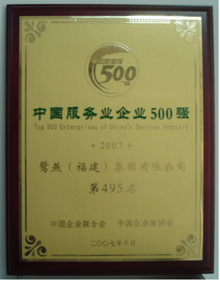 鷺燕集團(tuán)近日捷報(bào)頻傳,在剛剛榮獲了“2007廈門企業(yè)100強(qiáng)”之后,再次躋身于“中國服務(wù)企業(yè)500強(qiáng)”之列。我集團(tuán)已連續(xù)兩年獲此殊榮。